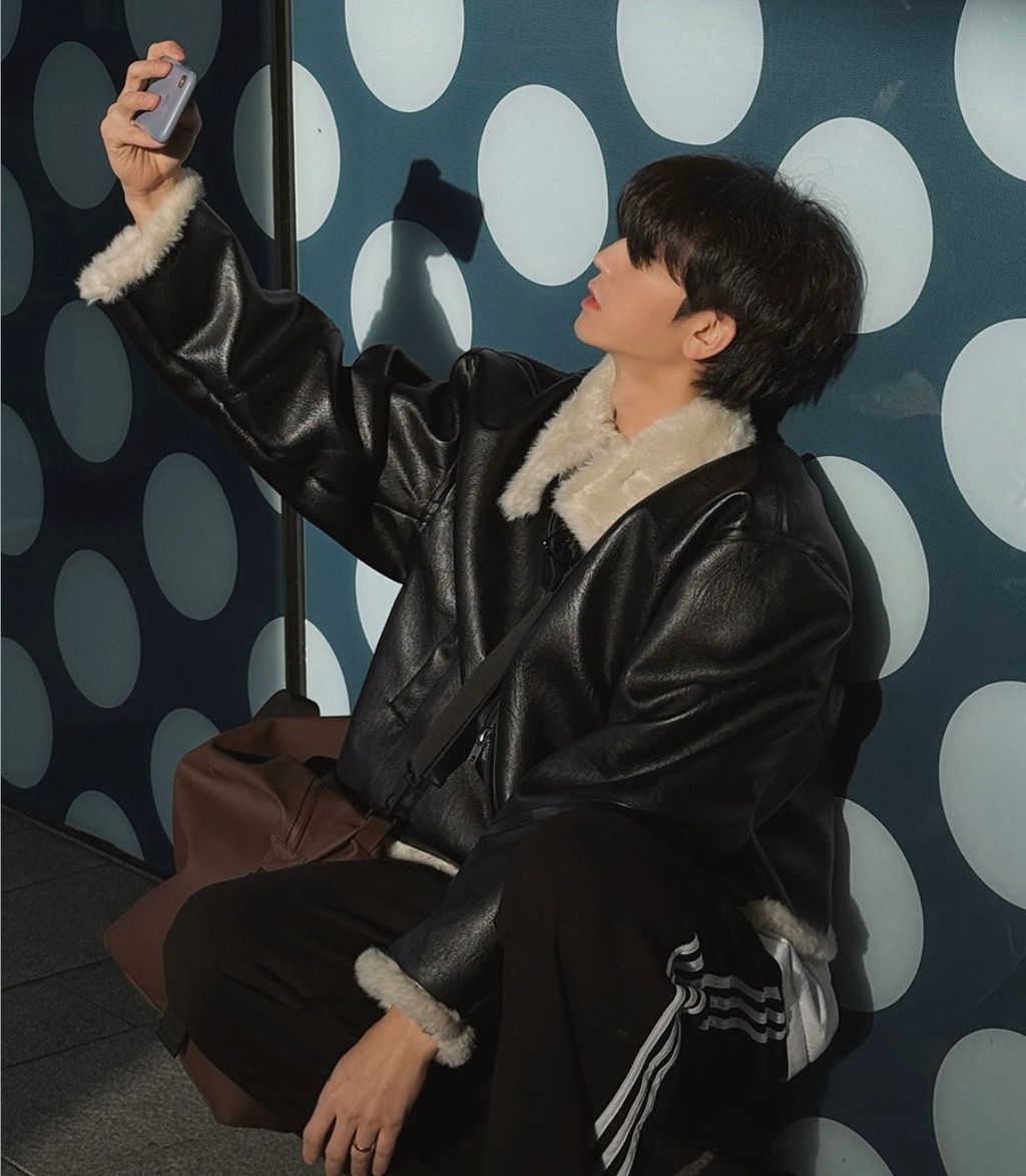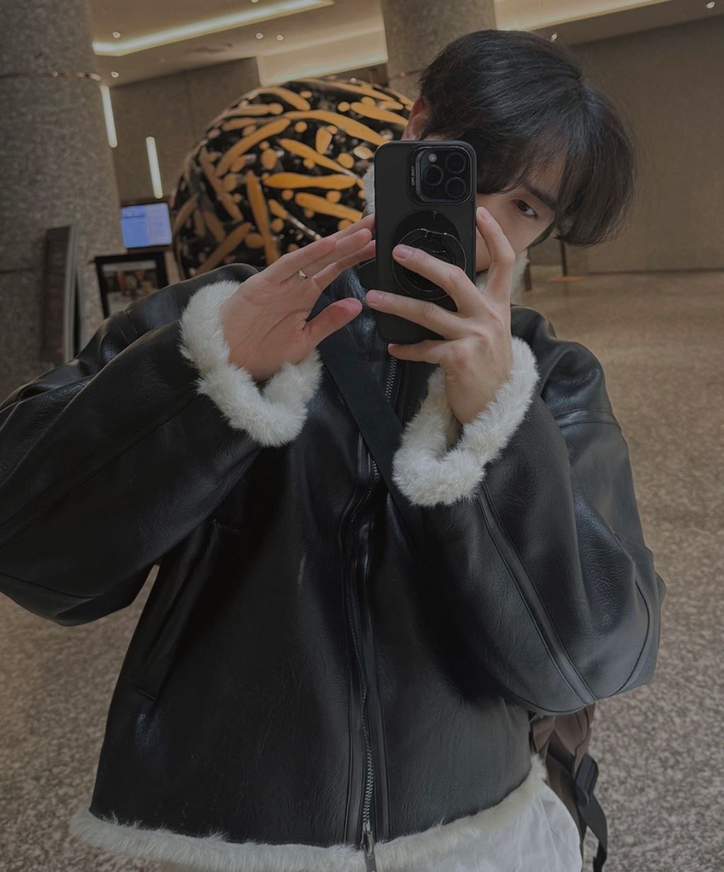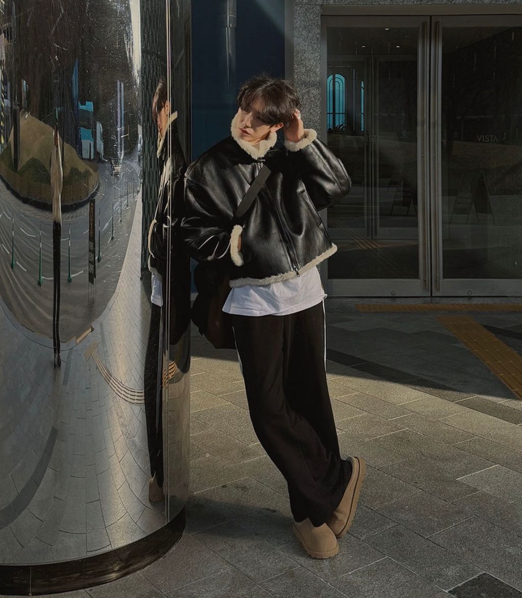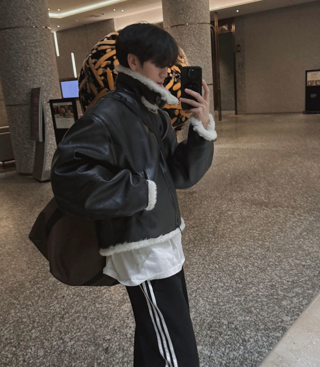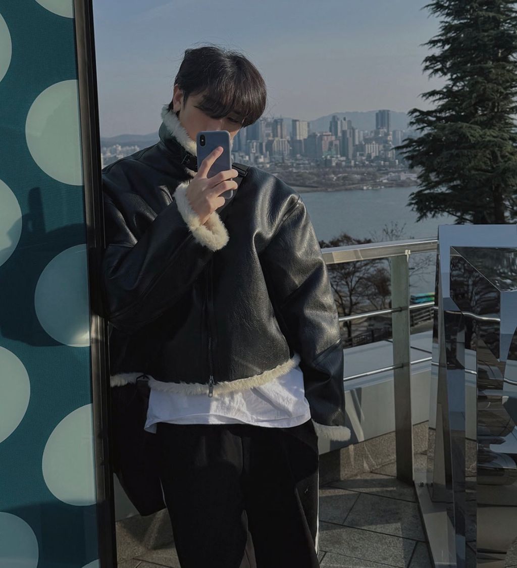 超挺人造皮革鋪毛內裏高領翻領野馬夾克 黑色